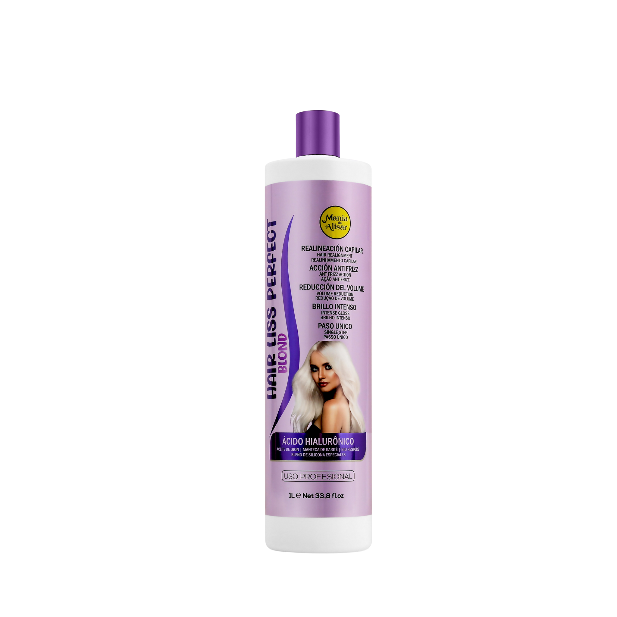 Hair Liss Perfect Blond Toner Keratin de Mania de Alisar ofrece una textura ligera y suave, con rápida absorción en el cabello. Su fórmula innovadora contiene activos especiales como la Manteca de Karité, que ayuda a controlar el volumen, hidratar profundamente, aportar brillo y suavidad, y promover un alisado intenso desde la primera aplicación, además de tonificar y nutrir profundamente las hebras.